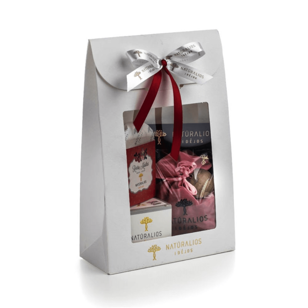 "Natūralios Idėjos" sukurtas dovanų rinkinys moterims sudarytas iš gaminių, kurių kvapai dera tarpusavyje ir yra skirti moteriškam skoniui – rožių, jazminų ir gėlių žiedų derantys subtilūs kvapai.