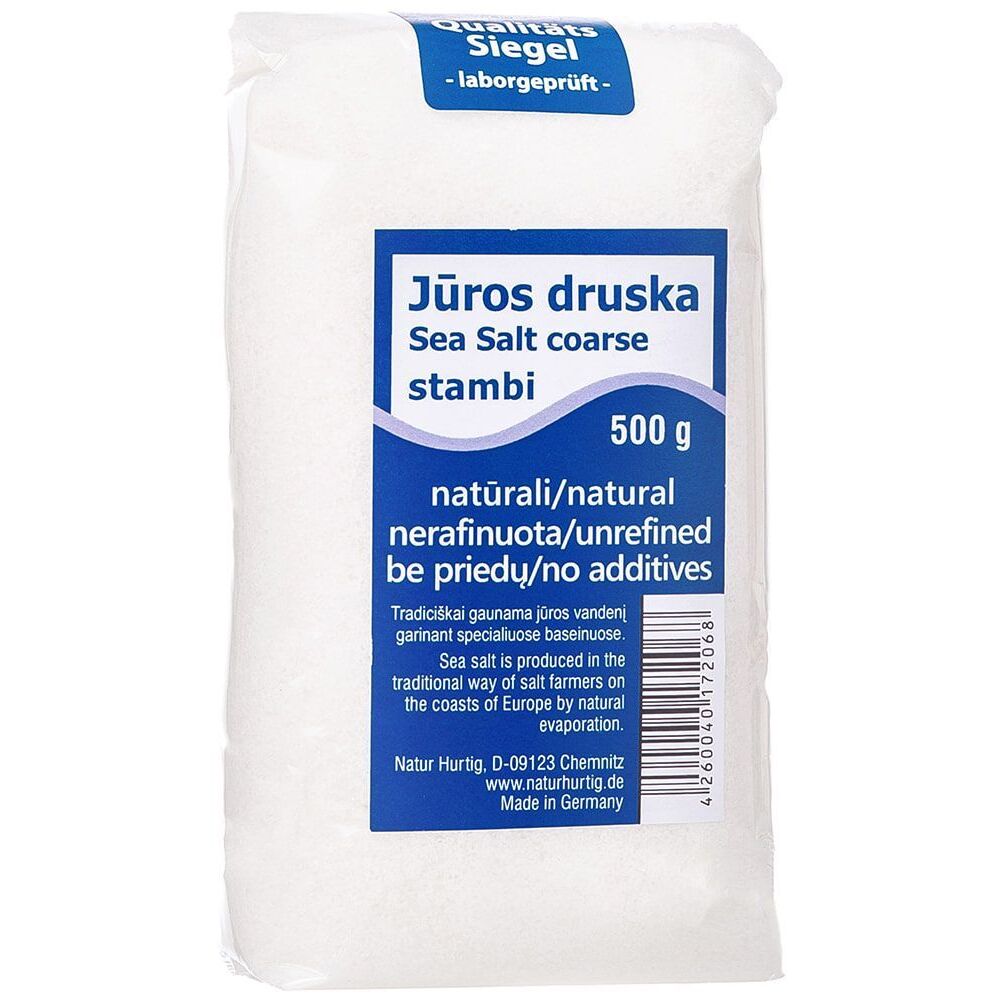 „Natur Hurtig“ stambi jūros druska – natūrali, neapdorota, nerafinuota, be priedų. Tradiciškai gaunama jūros vandenį garinant specialiuose baseinuose. Laboratoriškai patvirtintas kokybiškas produktas. Maišelyje.