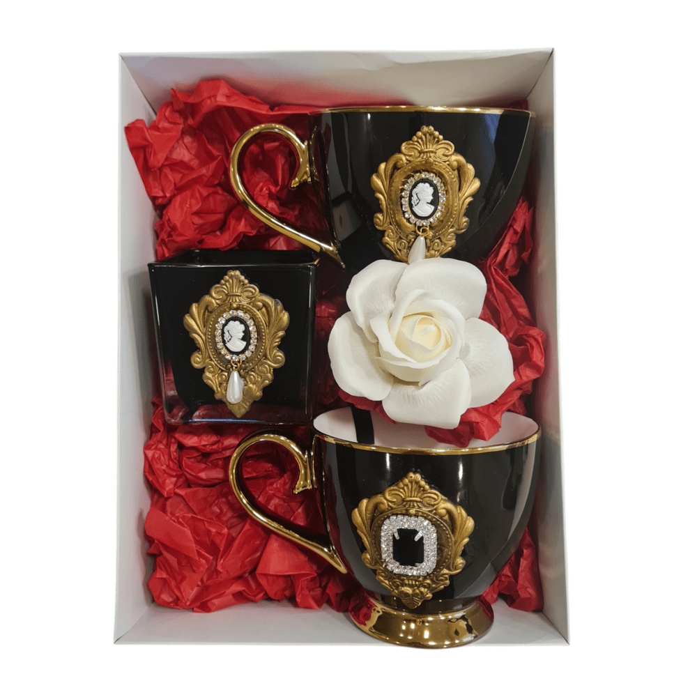 Rankomis dekoruoti porcelianiniai puodeliai.sojų vaško žvakė,muilo gėlė.